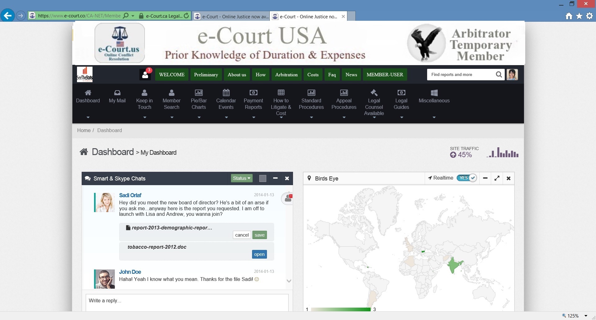 e-Court USA Arbitrator Dashboard