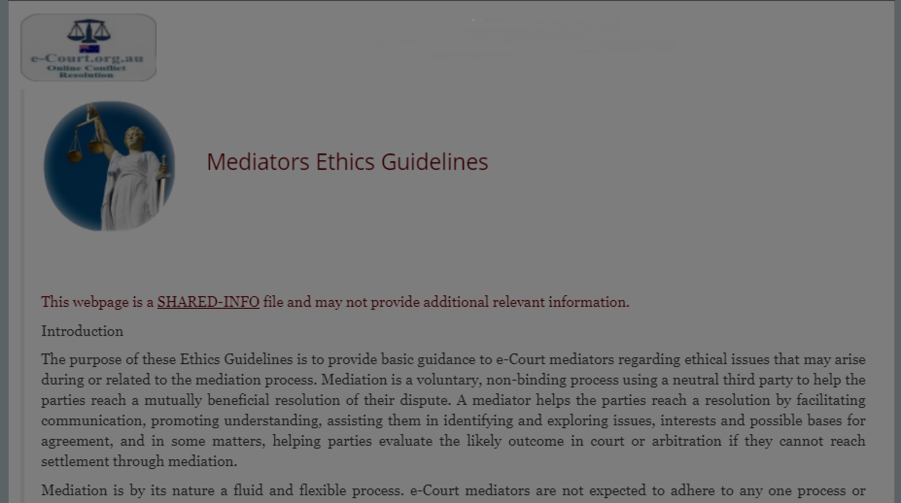 e-Court strongly encourages its mediators to confront directly any ethical issues that arise in their cases as soon as the issue becomes apparent, and to seek advice on how to resolve such issues from the Regional Management Team.